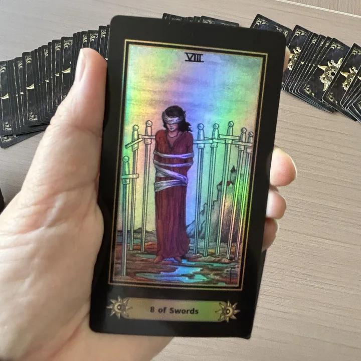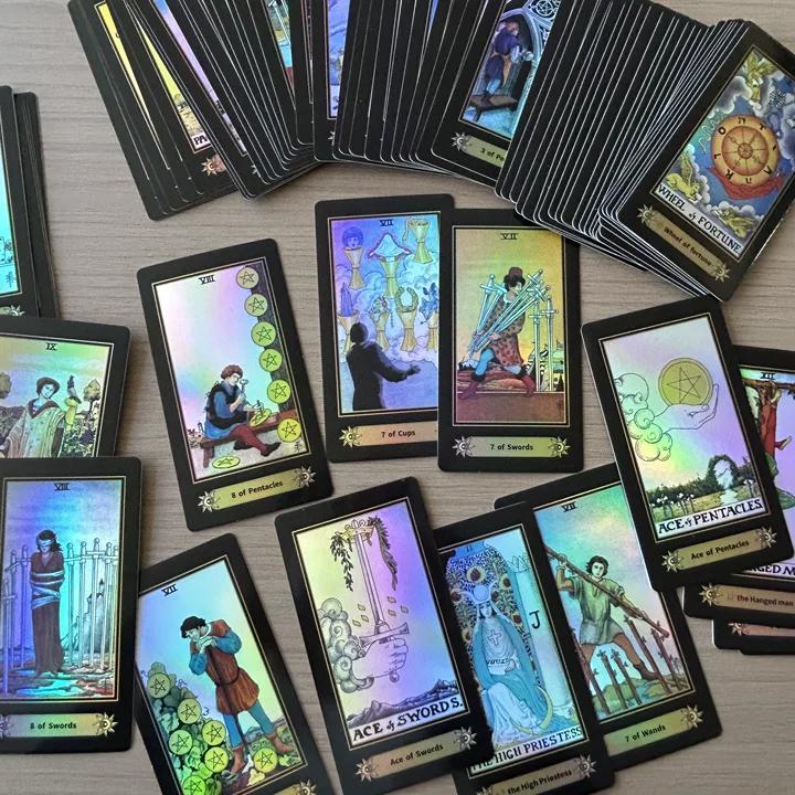 This is an exquisite Rider-Waite Tarot deck with laser craft, which shimmers with dazzling colors when viewed from different angles! The entire card surface is made with a reinforced, wear-resistant process, making it hard to bend or damage. With a size of 11.5*6.9cm, it is an irreplaceable choice for those who pursue aesthetic appeal and a premium tactile experience.
